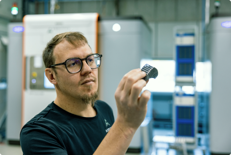 Prozessstabilität gewährleistet Reproduzierbarkeit – das A und O in der Serienfertigung für Branchen wie Luft- und Raumfahrt, Defense oder Medizintechnik. Von Additive Willmann erhalten Sie konstant hohe Qualität. Dies gewährleisten wir zu allererst durch unser Team aus erfahrenen Profis und durch unseren modernen Maschinenpark: Hier harmonieren Mensch und Maschine – unter anderem mehrere SLM- und MBJ-Anlagen – für eine präzise und effiziente Serienfertigung.